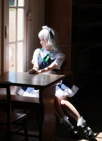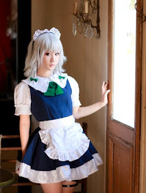 this The Touhou Project Cosplay by Koyuki i took from cosrain.com, i almost can update my posting today XD, its busy days, when i saw this The Touhou Project Cosplay by Koyuki in my cosplay collection, i regain my spirit to post my blog, well...its been long time im not post of Koyuki cosplay, as always Koyuki always did great cosplay, the photograph behind this cosplay photo is Kojima, actually i dont really play this game, but when i compare Koyuki cosplay with Sakuya picture, i thoug Koyuki seem very fit as Sakuya, the background of this The Touhou Project Cosplay by Koyuki has taken inside building with classic taste, that very fit with Sakuya who live in the mansion. love it.